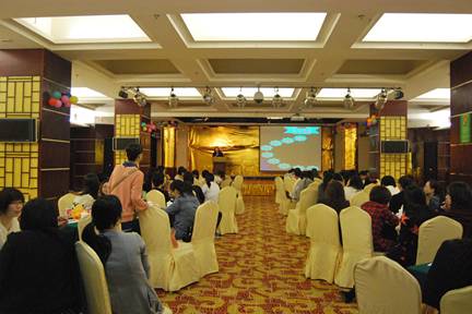 张晓燕老师应银行邀请,为银行职员做《幸福人生》心理讲座,图为张晓燕老师演讲现场。